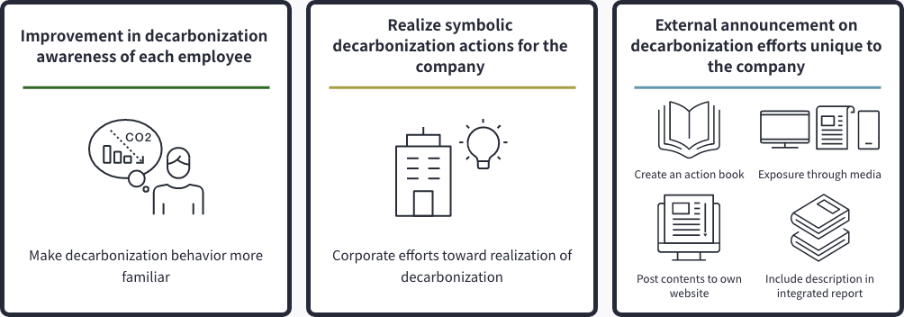 Dentsu Group Inc. has also instigated other original and noteworthy solutions: (1) promotion of decarbonization behavior internally for employees; and (2) an application service developed for vitalizing internal communications in which decarbonization behavior is used as a trigger, for which demonstration experiments are ongoing within dentsu Japan. We are also focused on developing a service based on systematizing the outcomes of (1) and (2) above, with the aim of offering this to other companies to aid announcement of their unique efforts toward decarbonization.