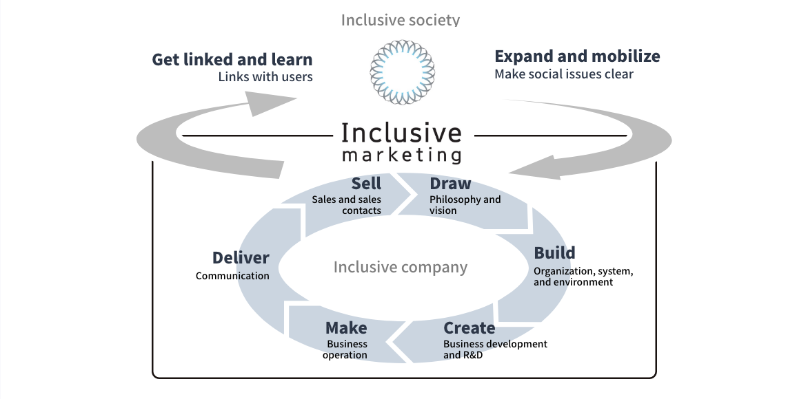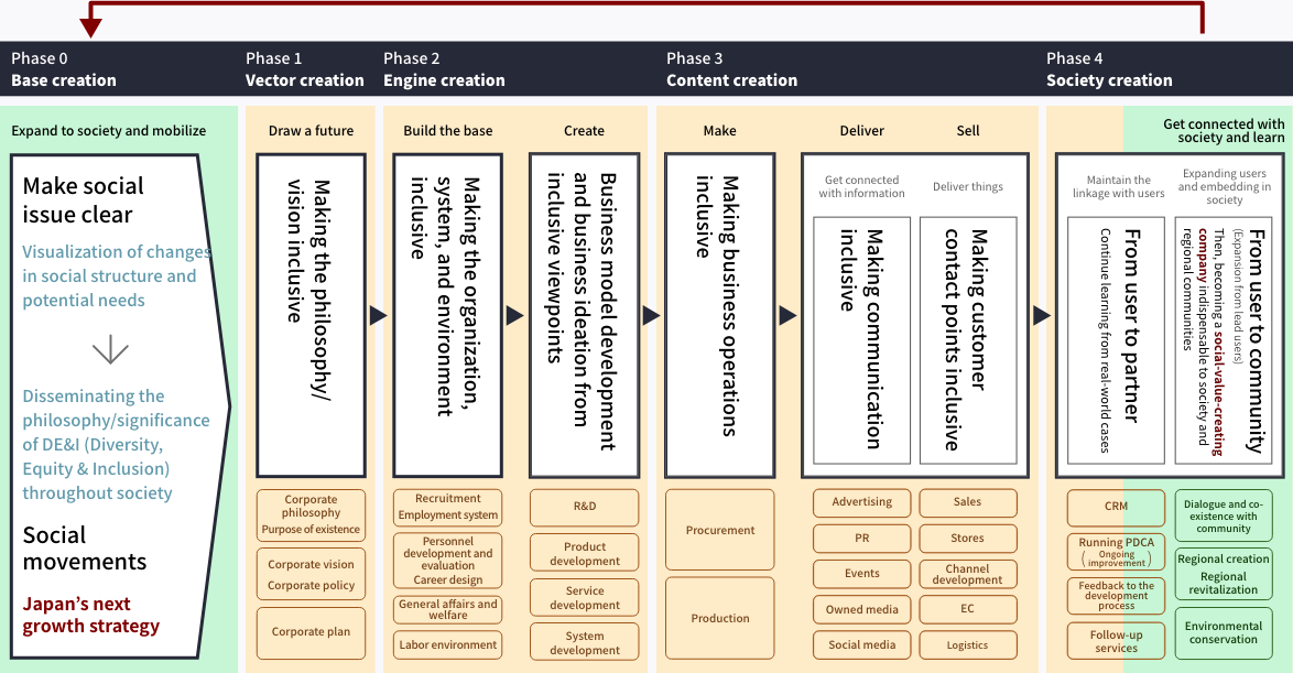 Overall picture of Inclusive Marketing: On the premise of DEI, we support overall corporate activities and help to realize co-creation with society.