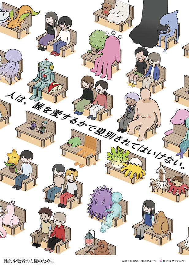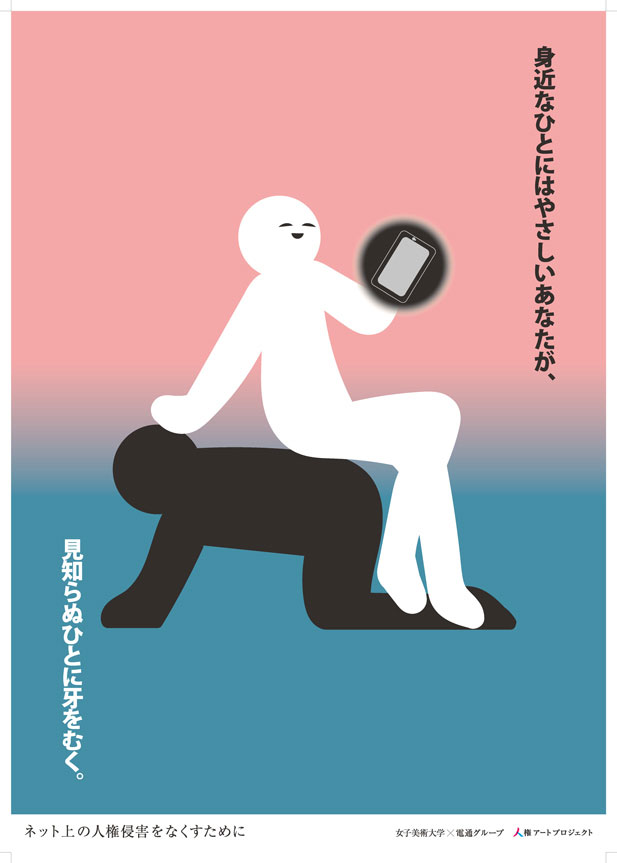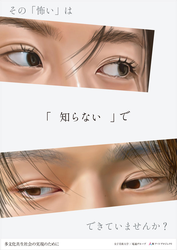 「人権アートプロジェクト」は、電通グループが継続してきた人権ポスター制作を、社会に開かれた活動へと発展させたものです。人権スローガンに合わせて、美術大学の学生がビジュアルデザインを考えるという、人権ポスターの共同制作プロジェクトです。
