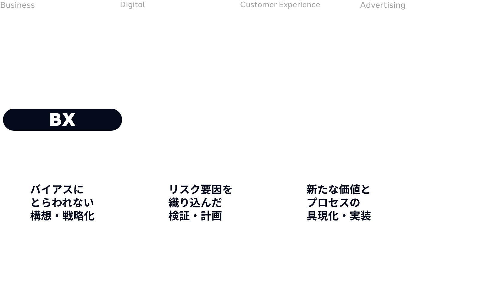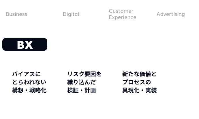 市場や業界特有のバイアスにとらわれず、顧客企業の事業資産を起点にその可能性を最大化し、トップラインの成長にコミットする戦略を立案します。