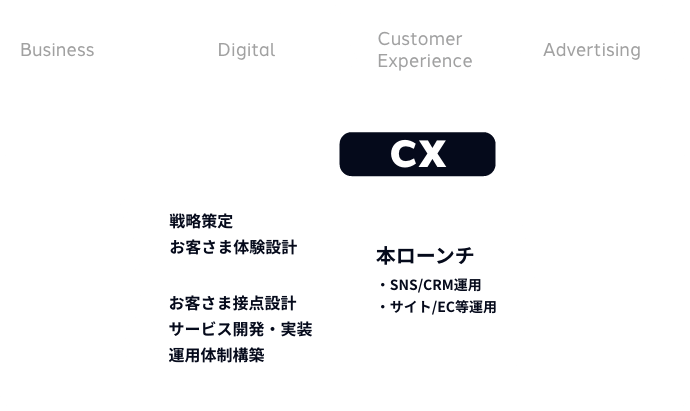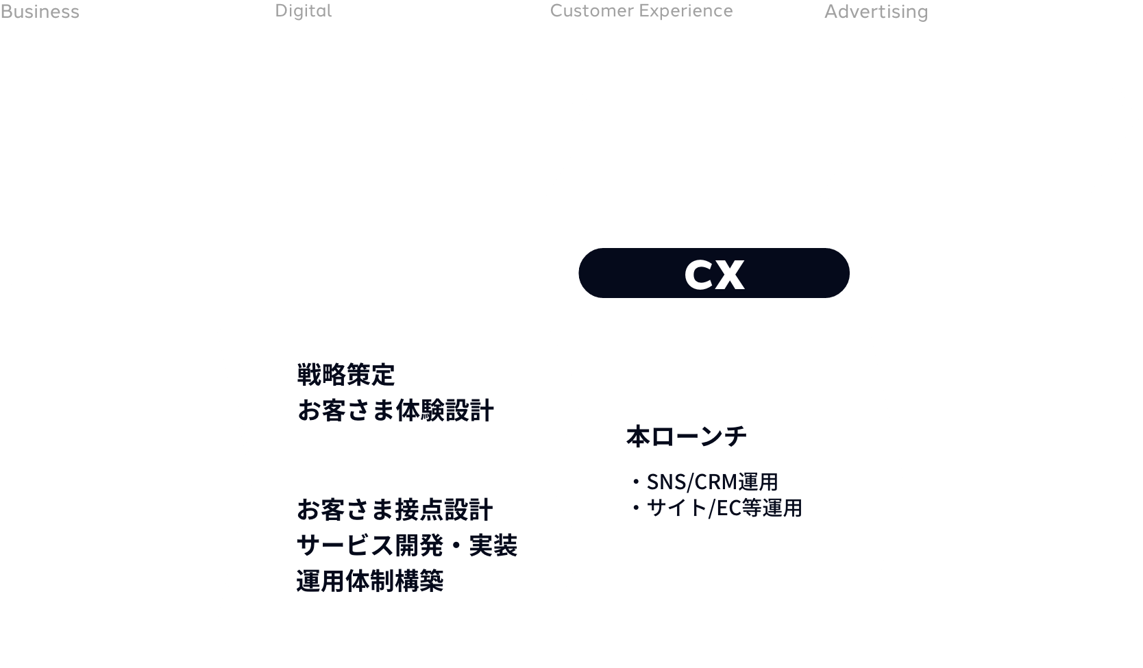 データとインサイトを軸にクリエーティビティを掛け合わせ、オンオフを統合し、お客さまの期待を超える体験とコミュニケーションをデザインします。
