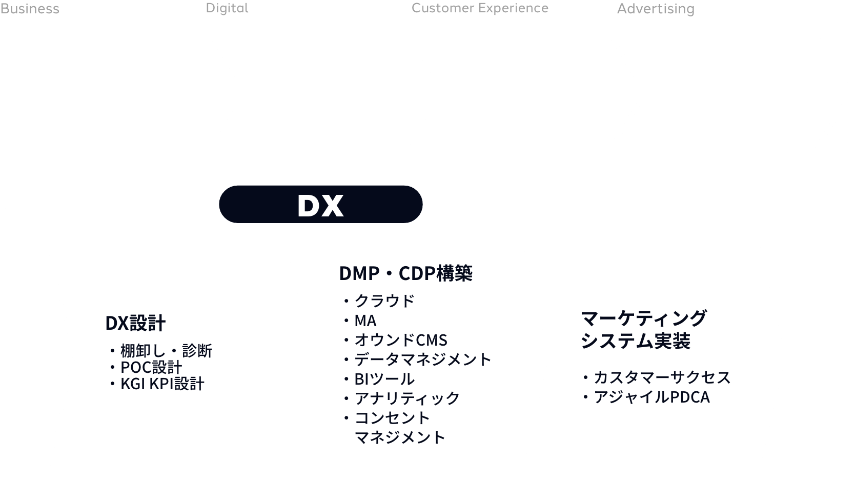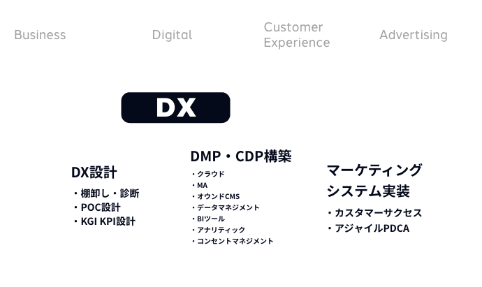 事業、お客さま体験、広告領域の変革のためにマーケティング基盤自体を変革し、事業成長を実現します。